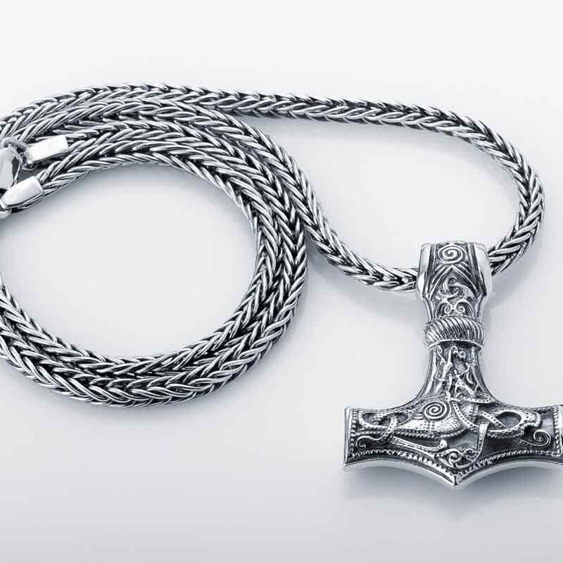 Elegante pero robusta, esta cadena es un tributo a la tradición nórdica de fabricar objetos hermosos y duraderos. Es un accesorio para quienes valoran la sabiduría del pasado y la artesanía que la honra.
