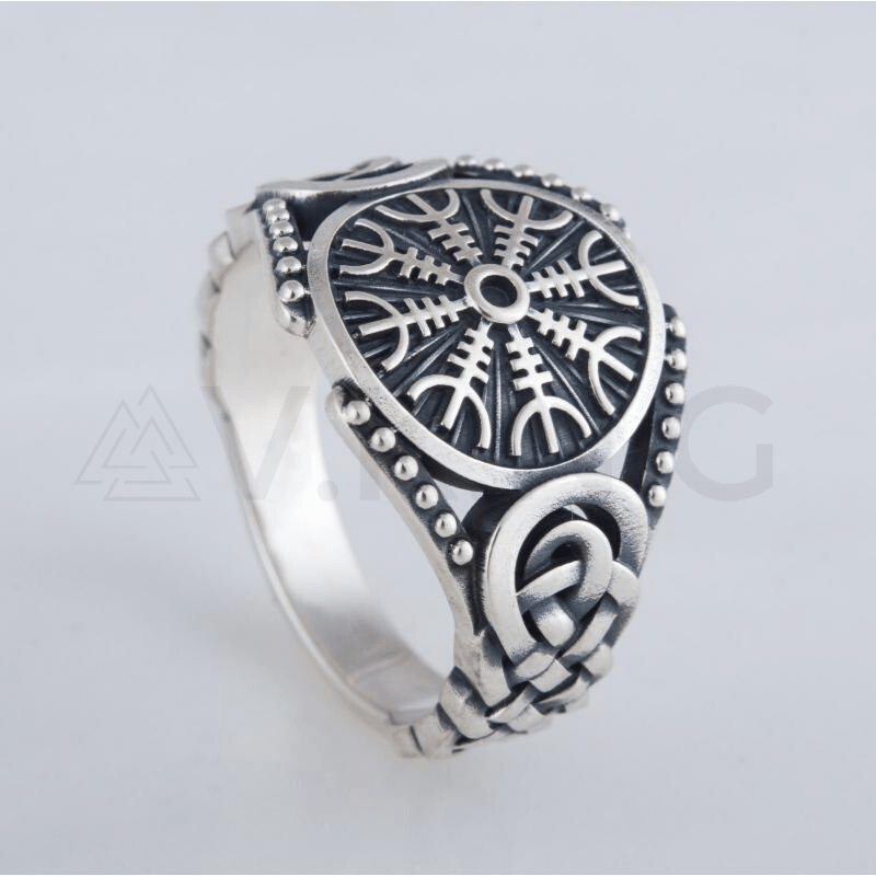 Este anillo de plata esterlina, adornado con el Helm of Awe en el auténtico estilo Mammen, captura la esencia del arte y la espiritualidad vikinga. El estilo Mammen, conocido por sus intrincados patrones y diseño detallado, florece en esta pieza, ofreciendo un vínculo directo con la era vikinga.