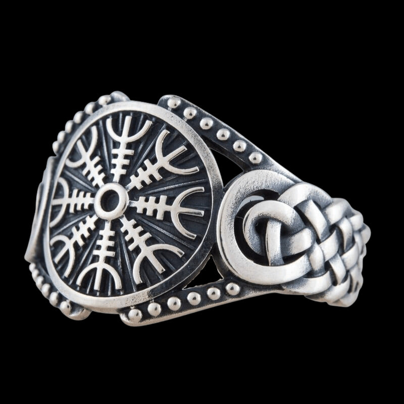 El Aegishjalmur, o Casco del Asombro, se erige como un poderoso símbolo vikingo de protección y triunfo. Llevado por los guerreros vikingos con la creencia de que aseguraría el éxito en la batalla, este símbolo se dibujaba en la frente como una llamada a los dioses por favor, y un testamento de la disposición del guerrero para enfrentar su destino en Valhalla si fuera necesario.