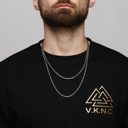 Es la cadena perfecta para colgar un colgante vikingo que invoque al dios nórdico o la runa que más te llame la atención.