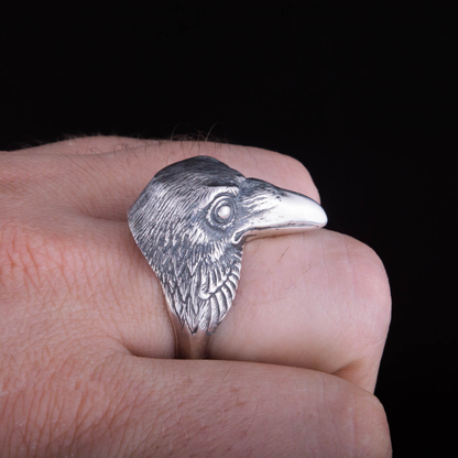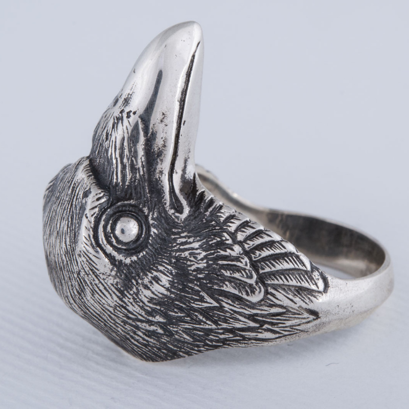 Anillo de plata de ley natural de cuervo hecho a mano
