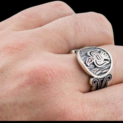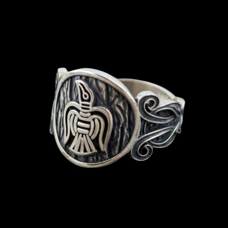 Este anillo de plata de ley hecho a mano encarna el espíritu y la inteligencia de los familiares de Odín. No es sólo un adorno, sino un talismán que conecta al portador con la sabiduría divina y el vasto tapiz de la mitología nórdica. Llevarlo es un tributo a los múltiples aspectos de Odín: como dios de la guerra, la sabiduría y la búsqueda del conocimiento.