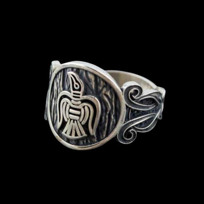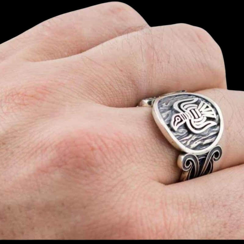 Anillo de plata de ley nórdico con adorno de cuervo hecho a mano
