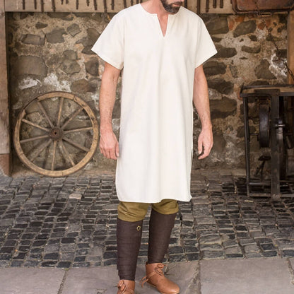 La túnica interior de manga corta Snorri rinde homenaje al legado perdurable de la moda nórdica y medieval. Su construcción robusta a partir de algodón tejido grueso no solo ofrece una mirada al pasado sino que también garantiza un uso cómodo y duradero adecuado para los tiempos modernos.