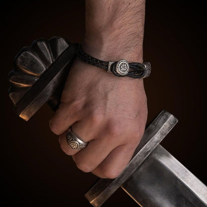 La Pulsera de Cuero con Cierre Valknut es un tributo al indomable espíritu de los guerreros vikingos. En la cultura vikinga, el Valknut simbolizaba una conexión sagrada con Valhalla, el salón de Odín, donde se creía que los valientes guerreros habitaban después de caer honorable en batalla.