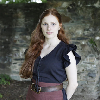 El vestido de mujer Agga es un homenaje a la elegancia atemporal de la sencillez medieval. Inspirado en la Alta Edad Media, encarna la belleza práctica de las prendas que llevaban las trabajadoras sirvientas y sirvientes de la época.