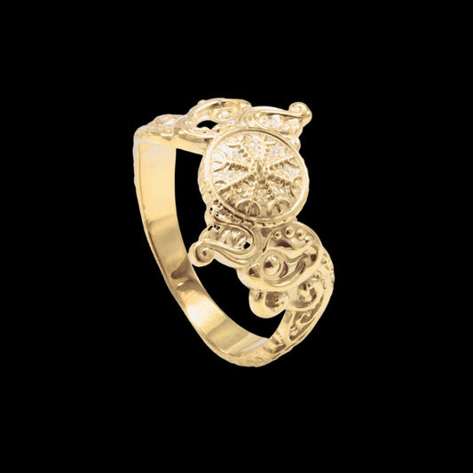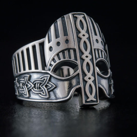 Anillo hecho a mano con símbolo de yelmo de asombro y adorno de lobo joyería vikinga de plata esterlina