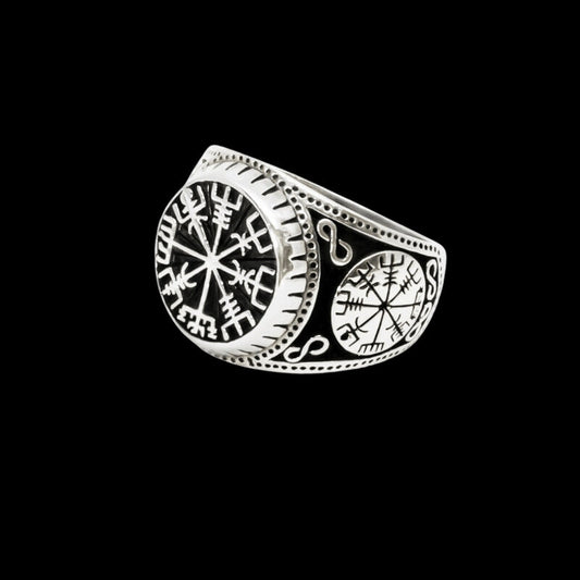 Anillo de plata de ley con brújula de bastones mágicos de Vegvisir