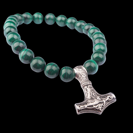 Käsintehty Viking-rannekoru malakiittia Mjolnirin kanssa