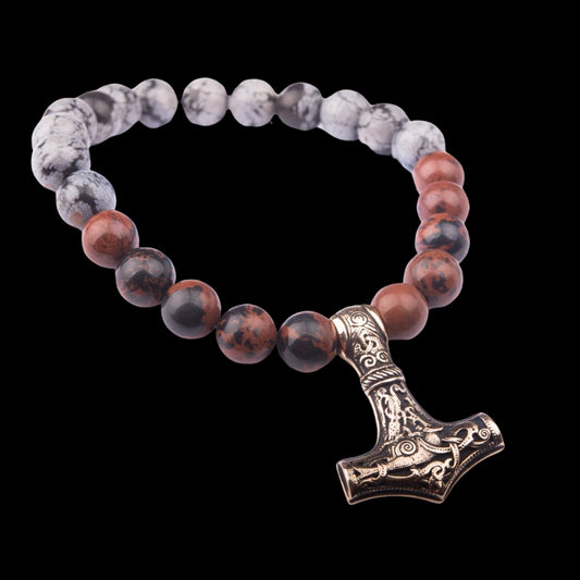 Viikinki-rannekoru obsidiaanissa pronssisen Mjolnirin kanssa