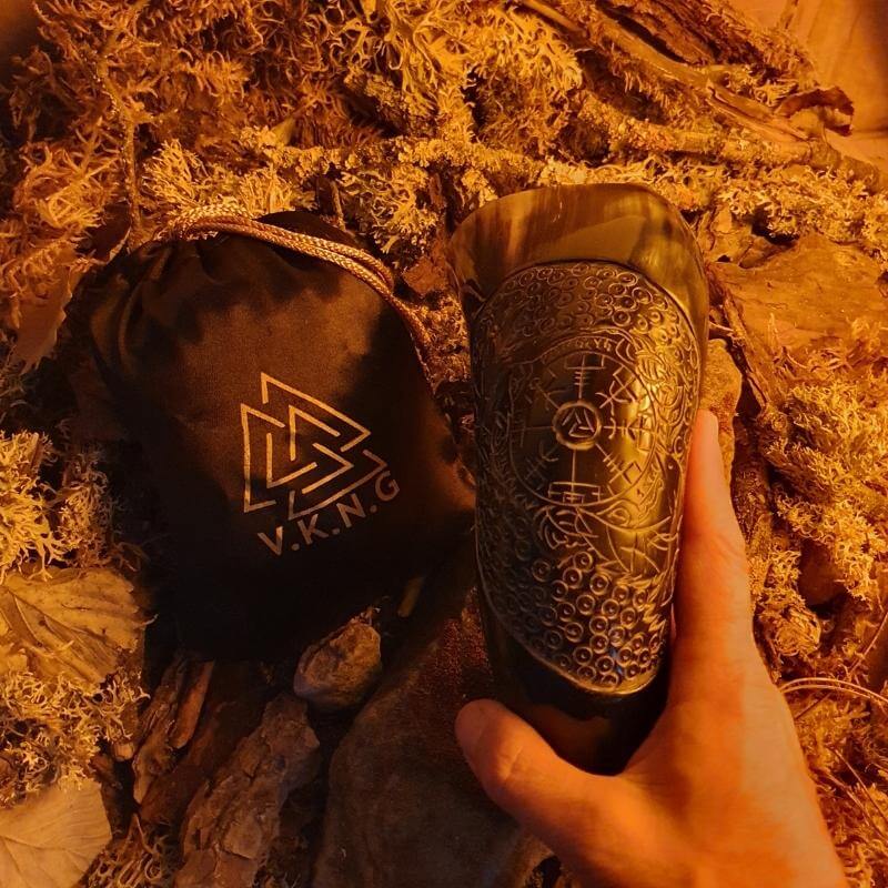 Jokainen sarvi, käsintehty ja ainutlaatuinen muotoilultaan, välittää näiden muinaisten symbolien olemuksen. Sarven pitäminen kädessä muistuttaa Huginnin ja Muninnin suojelevasta katseesta sekä Vegvisirin erehtymättömästä suunnasta, majakkana pohjoismaisessa henkisessä merimaisemassa.