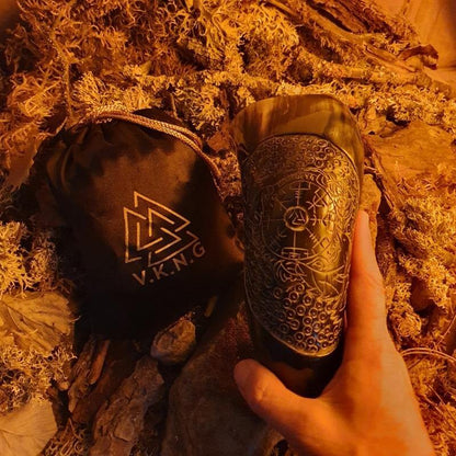Tämä sarvi, kaiverrettu suojelun ja ohjauksen symboleilla, toimii kanavana pohjoisen viisaaseen henkeen. Se on erottuva reliikki, kosketuspiste niille, jotka ammentavat inspiraatiota rikkaasta pohjoismaisesta mytologian kudelmasta.