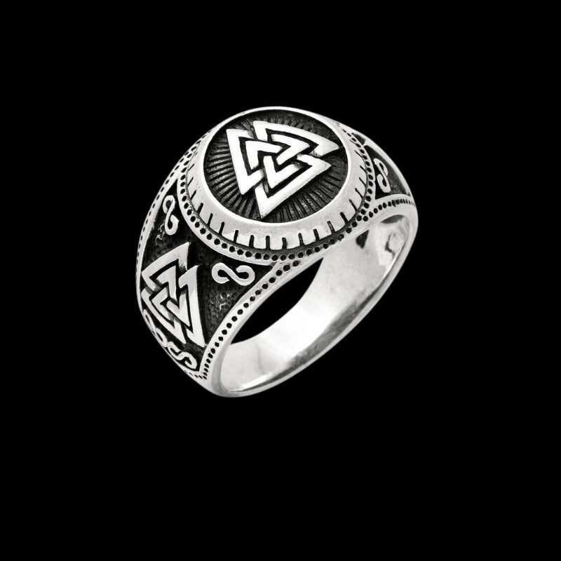 Kohtalo on kirjoitettu, sia ei ole muuta pelättävää kuin pelko itse. Kutsu tämä viikinki-mentaliteetti esiin tällä hienosti suunnitellulla sterlinghopealla Valknut-sormuksella.