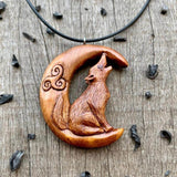 Käsin veistetty ainutlaatuinen luumupuusta kelttiläinen susi kuuriipuksessa