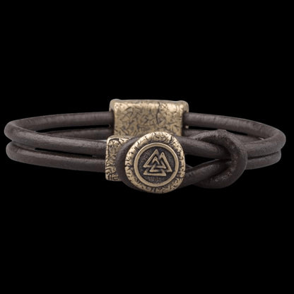 Käsintehty Valknut Clasp nahkaranneke pronssi