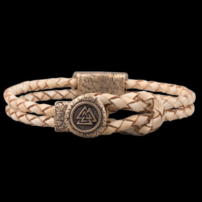 Pronssinen Valknut Clasp -nahkarannekoru on voimakas kunnianosoitus viikingisoturin äärimmäiselle pyrkimykselle: kuolla taistelussa ja ansaita paikka Valhallassa jumalien rinnalla. Valknut-symboli, jota edustaa kolme toisiinsa kiinnittyvää kolmiota, liittyy läheisesti kuolleisiin ja Odiniin, pohjoismaisten jumalien kunnioitettuun kuninkaan.