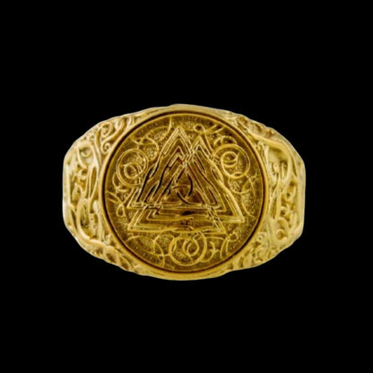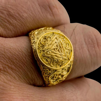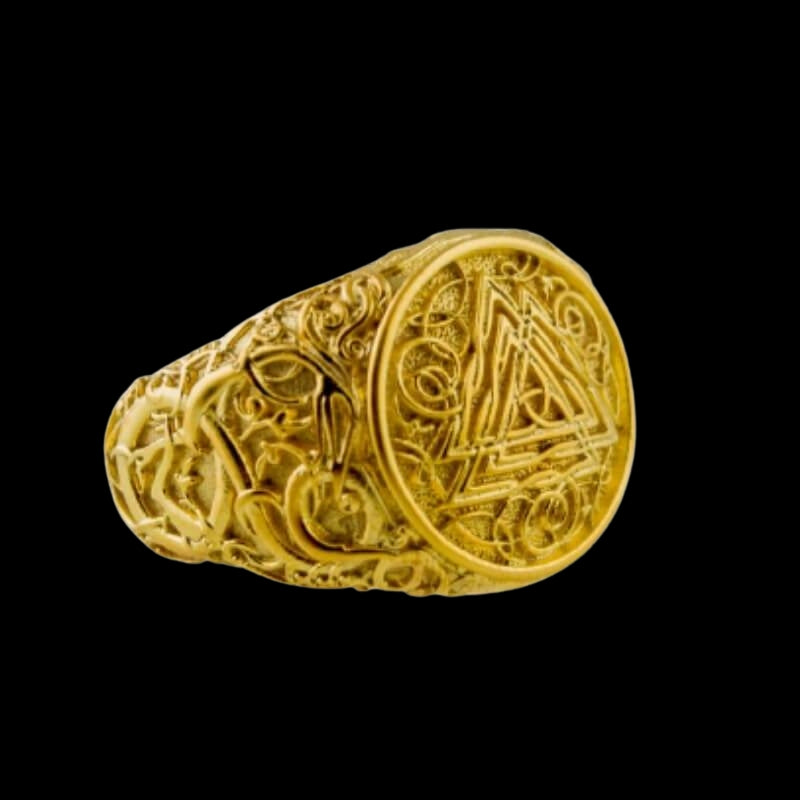 Käsintehty Valknut Urnes Style kultasormus