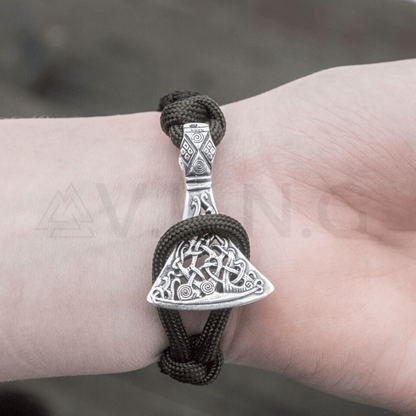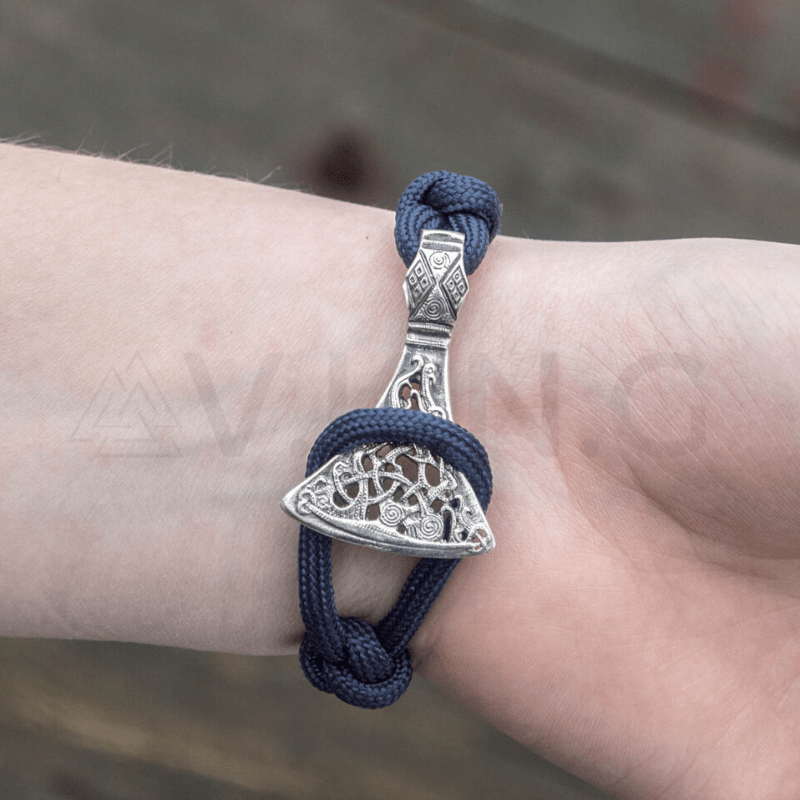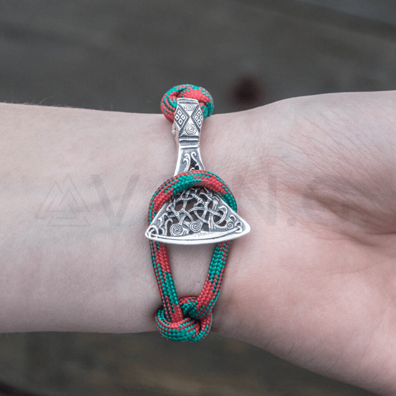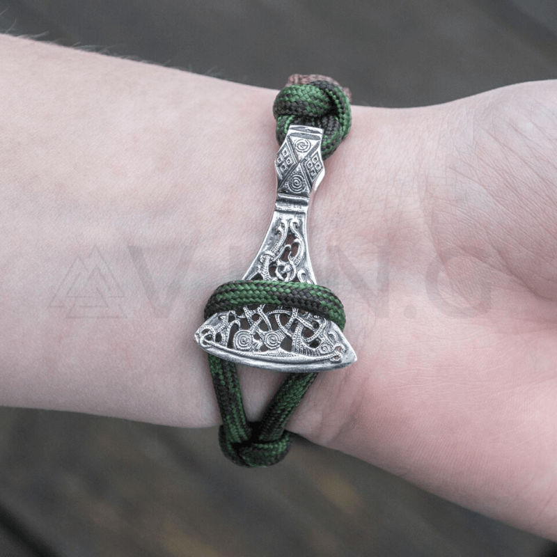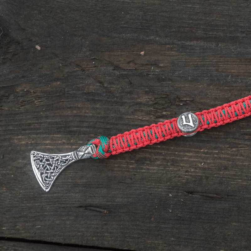 Käsintehty Viking Axe riimuilla Paracord-rannekoru Sterling hopea