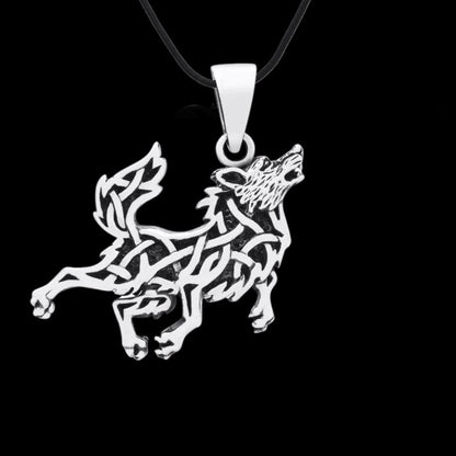 Tämä sterling-hopeinen riipus vangitsee suden läsnäolon viikinkiuskossa. Petoa kehystää solmukuvio, joka on nähtävissä muinaisissa pohjoismaisissa kaiverruksissa, herättäen ikuisuuden ja kohtalon monimutkaiset polut.