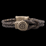 Bracelet En Cuir Fermoir Valknut Fabriqué A La Main en Bronze