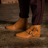 Dans les colonies nordiques animées, des chaussures adaptées étaient essentielles. Nos chaussures médiévales Jorvik sont un clin d'œil à l'esprit viking durable, conçues pour le chercheur moderne d'histoire et d'aventure. Ces chaussures ne sont pas seulement une paire d'accessoires ; ils sont une passerelle vers une ère d’exploration et de découverte.