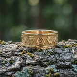 Bague En Or Valknut Avec Bandes Nordiques Fabriquée A La Main