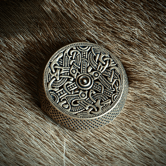 Notre broche viking en bronze de Lindholm Hill est inspirée d'une broche trouvée dans une sépulture du XIe siècle à Aalborg, au Danemark. Elle est décorée du motif de la "grande bête", qui représente un grand animal entrelacé avec un petit serpent. Ce motif était courant dans l'art de style Urnes.