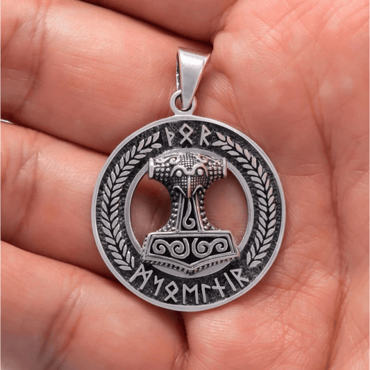 Mjölnir Avec Runes Nordique - Pendentif En Argent