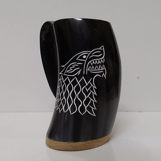 Tasse En Corne Polie Avec Loup Sculpté Fait A La Main