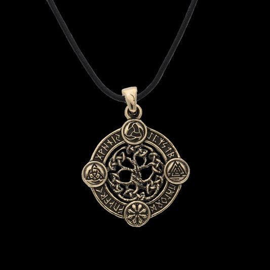 Yggdrasil, L'arbre Du Monde Entouré De Runes - Pendentif Fait Main En Bronze