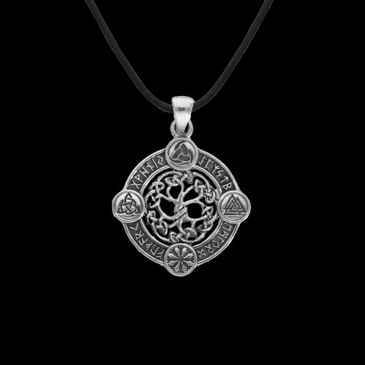 Yggdrasil L'arbre De Vie Entouré De Runes -Pendentif Fait Main En Argent