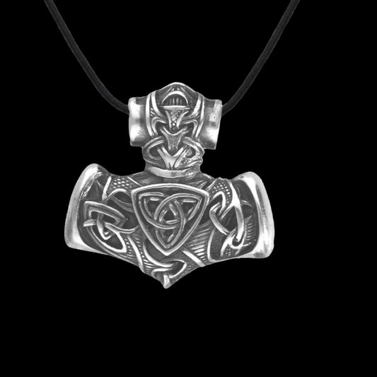 Gtand Marteau de Thor Avec triquetra & Valknut - Fabriqué A La Main En Argent ( Cordon Tréssé Offert)
