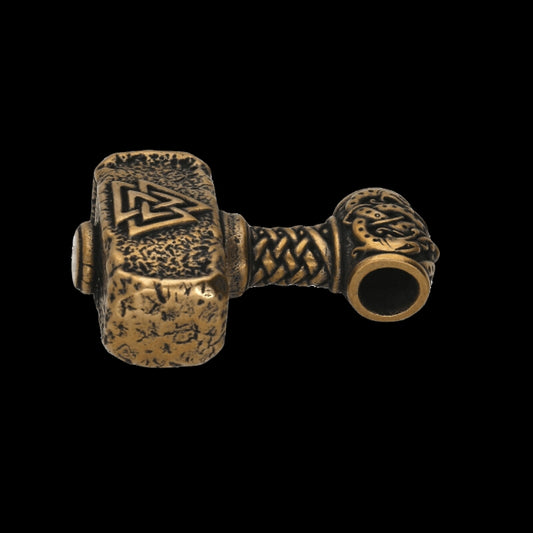 Grand Marteau De Thor Avec Triquetra & Valknut - Fabriqué a La Main En Bronze