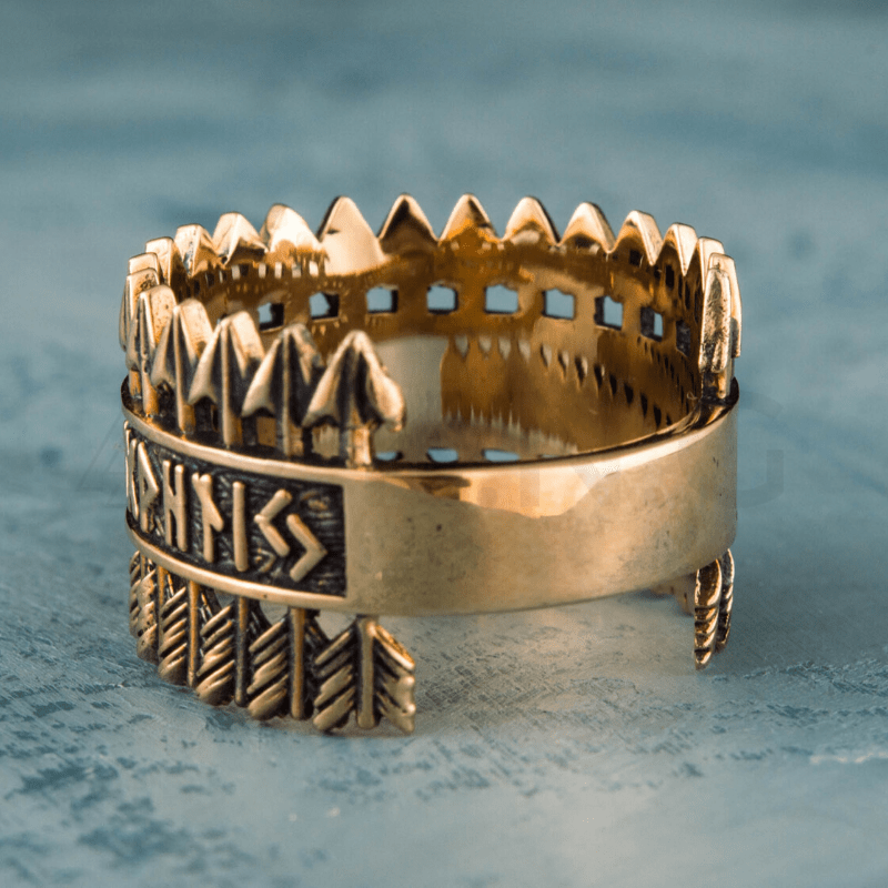 Bague Flèches Runes Elder Futhark Fabriquée A La Main En Bronze