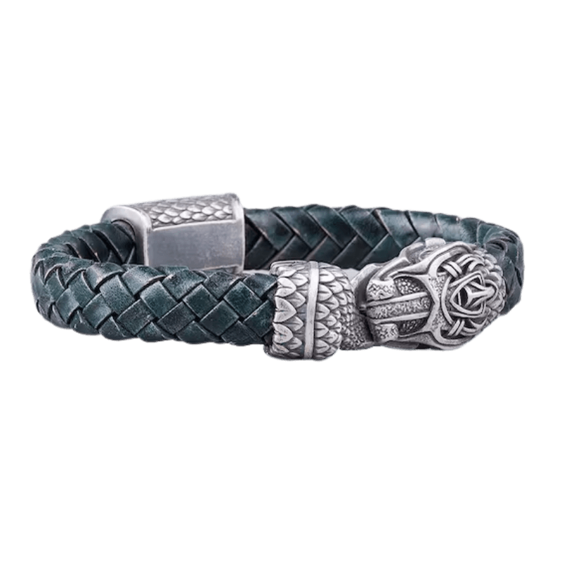 Le bracelet Dragon Hook est une représentation exquise de l’élégance mythique et de l’artisanat robuste. Fabriqué à la main à partir de cuir de haute qualité, c'est une pièce qui vous connecte au monde naturel et aux anciennes sagas nordiques.