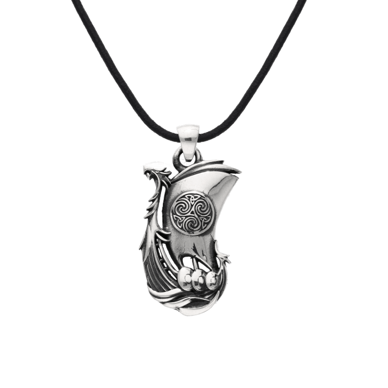 Ce pendentif en argent massif représente le légendaire Drakkar, le drakkar viking qui naviguait sans crainte dans des eaux inconnues.