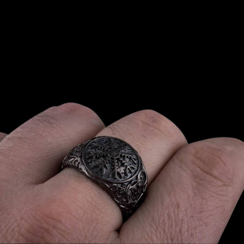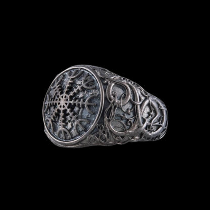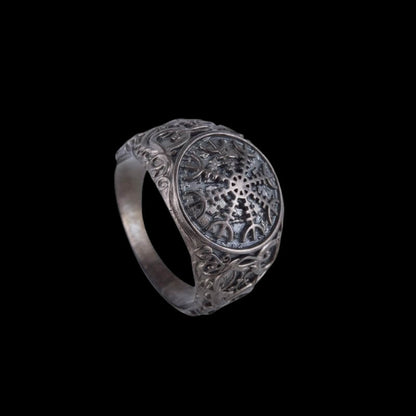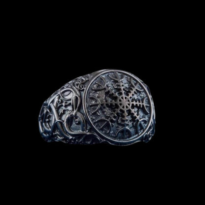 Bague Heaume De La Crainte Style Urnes Fabriquée A La Main En Argent Ruthénium