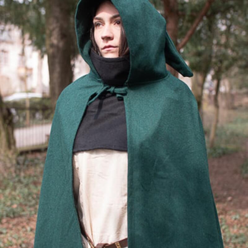 La capuche pointue ajoute une touche de flair médiéval tout en offrant une protection contre les éléments.