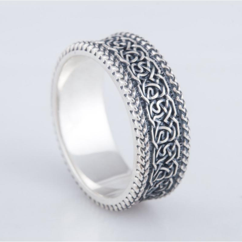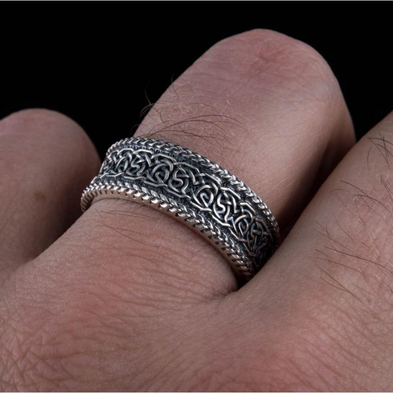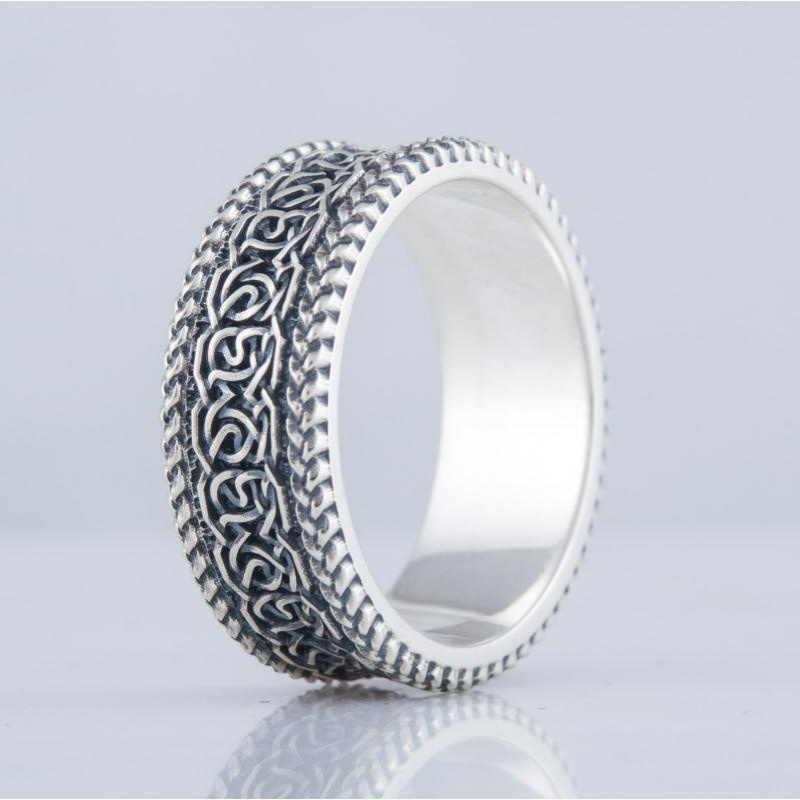 Bague Avec Ornement Nordique Fabriquée A La Main En Argent