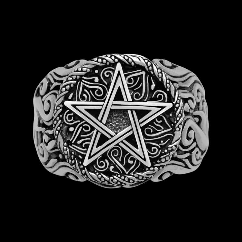 Pas seulement un ornement, cette bague est une amulette de protection artisanale, s'appuyant sur l'association de longue date du pentagramme avec la sauvegarde et la perspicacité spirituelle.