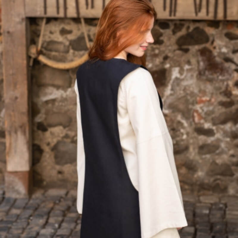 Ce surcot, confectionné à partir d'un tissu en laine à la texture rugueuse mais confortable, apporte un look médiéval authentique à n'importe quelle tenue. Historiquement porté sur une cotte, une large sous-tunique pour hommes et femmes, la Surcot Isabella reste fidèle à ses racines tout en offrant une pièce polyvalente pour un usage moderne.