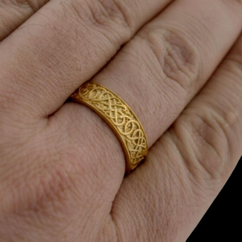 Bague En Or Ornementée D’urnes Fabriquée A La Main