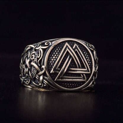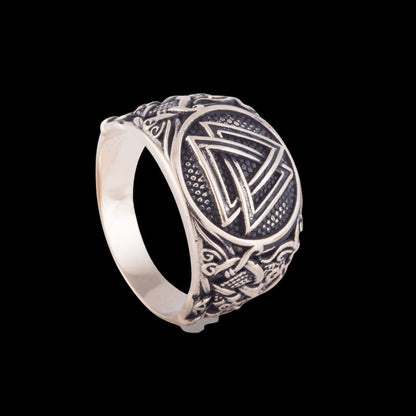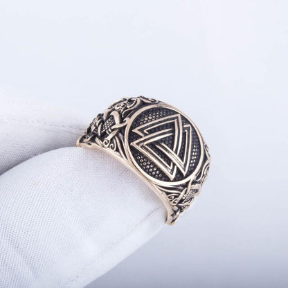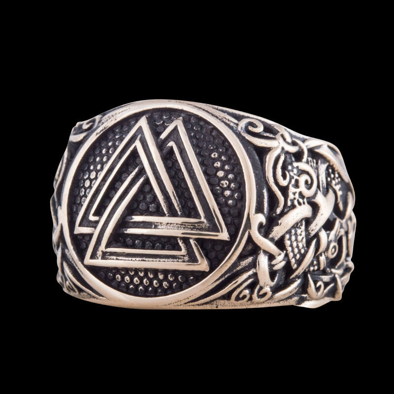 Bague Valknut Avec Ornement De Style Mammen Fabriquée A La Main En Bronze