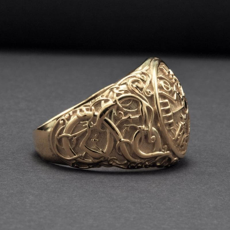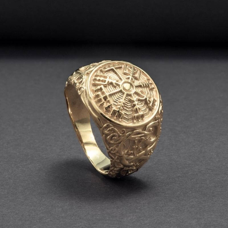 Bague En Or Vegvisir De Style Urnes Fabriquée A La Main