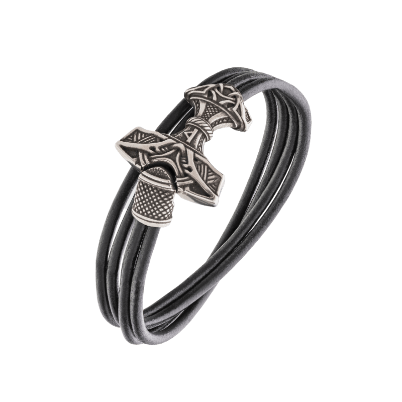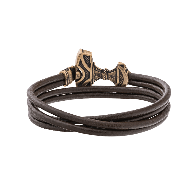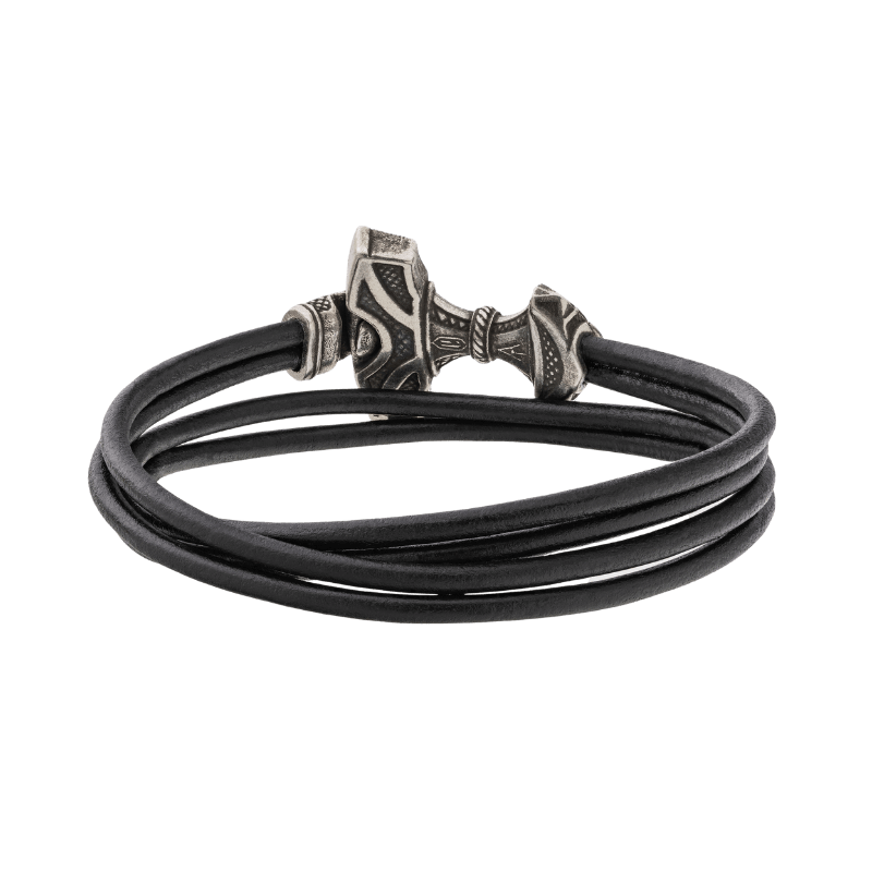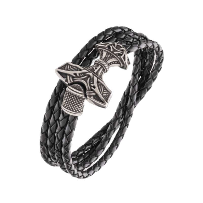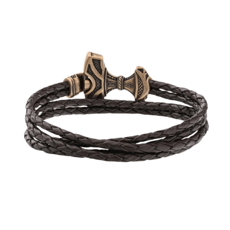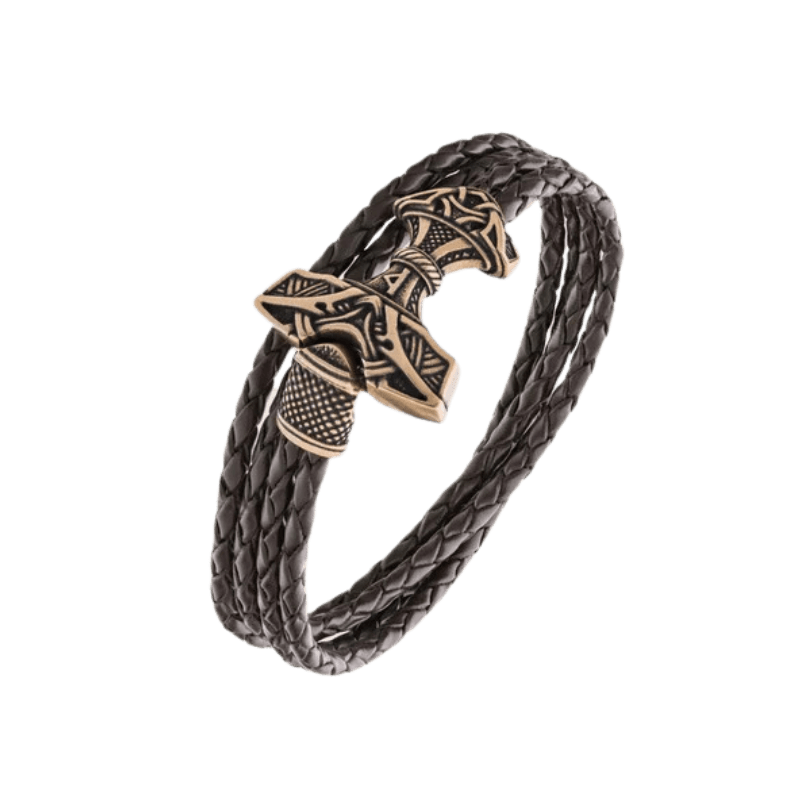 Bracelet En Cuir Viking Avec Marteau De Thor Fabriqué A La Main