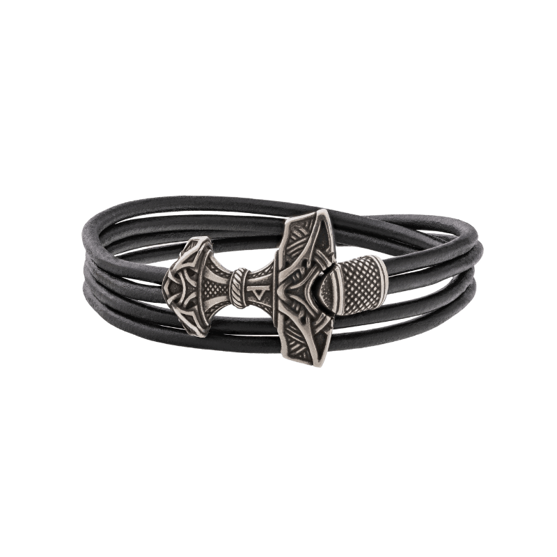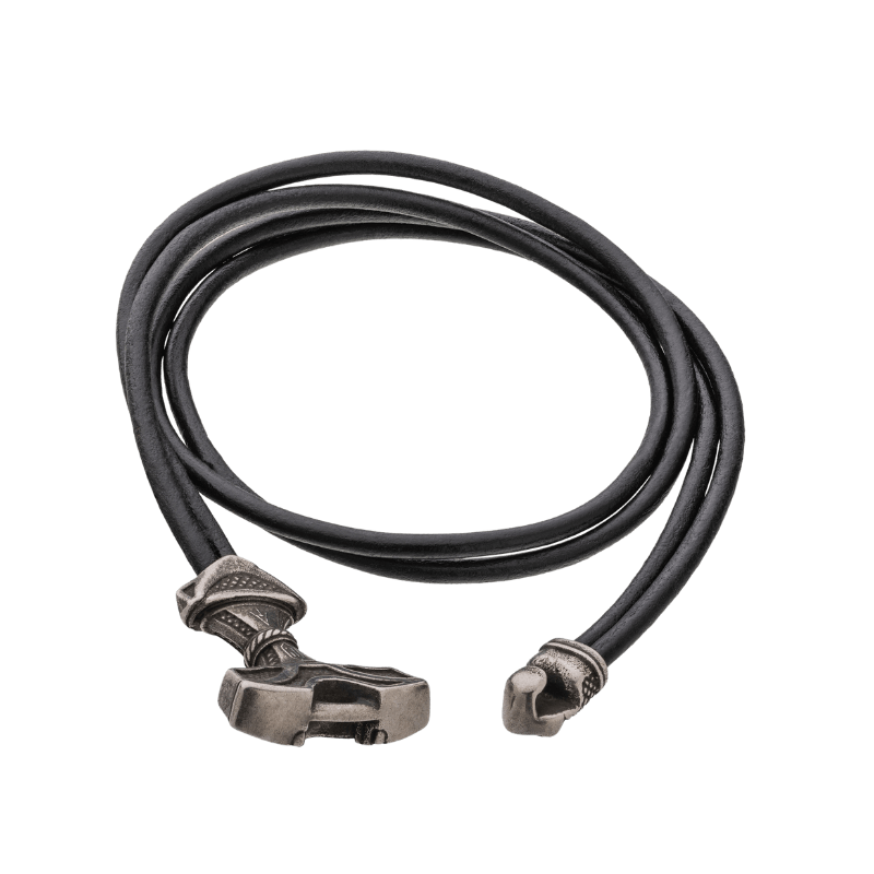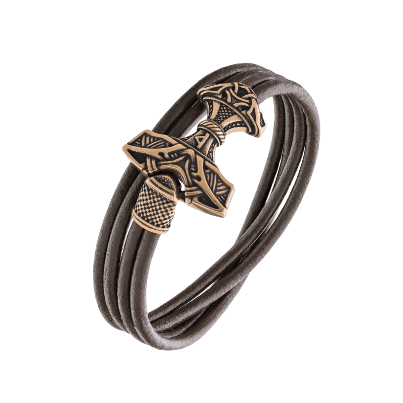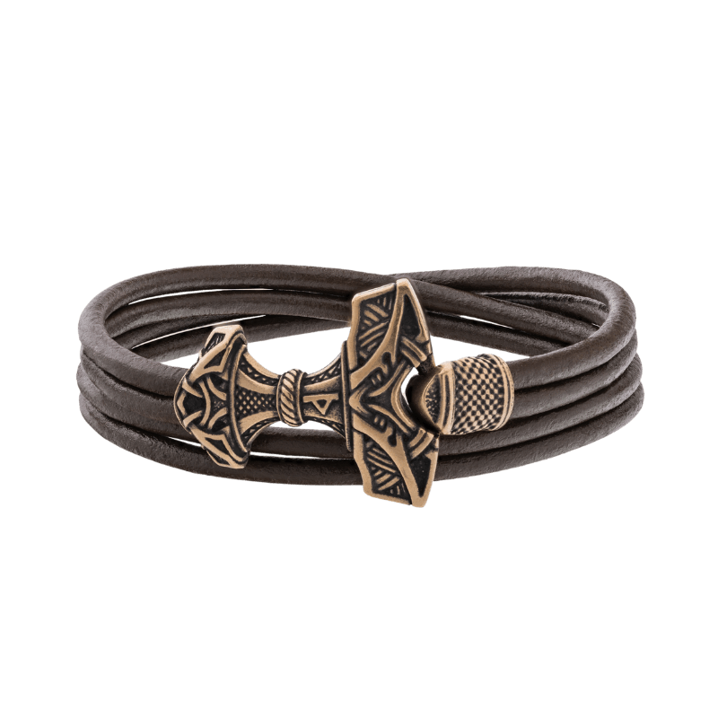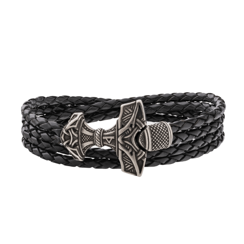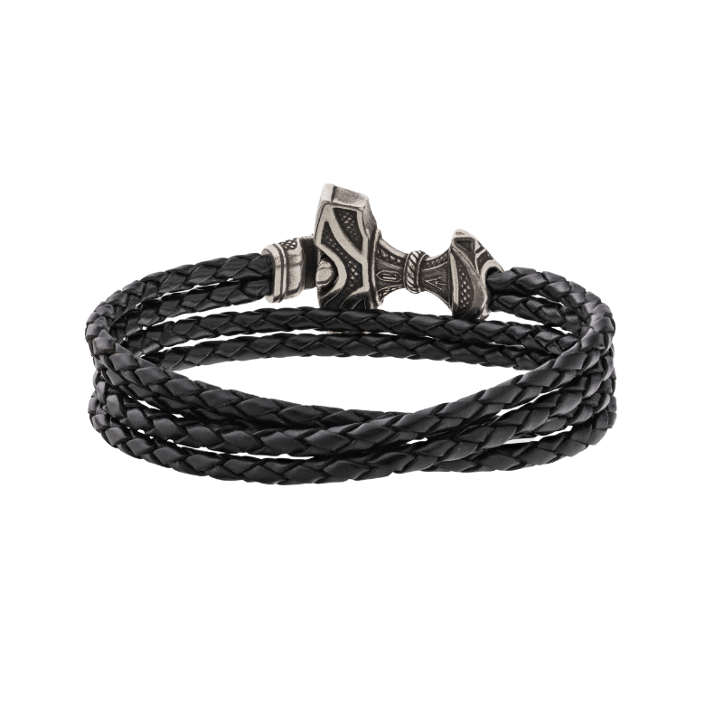 Bracelet En Cuir Viking Avec Marteau De Thor Fabriqué A La Main
