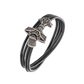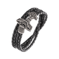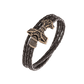 Ce bracelet combine astucieusement un cordon en cuir tressé espagnol avec un fermoir marteau en bronze italien, ce qui en fait une pièce saisissante qui honore ce riche héritage.