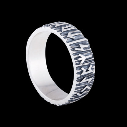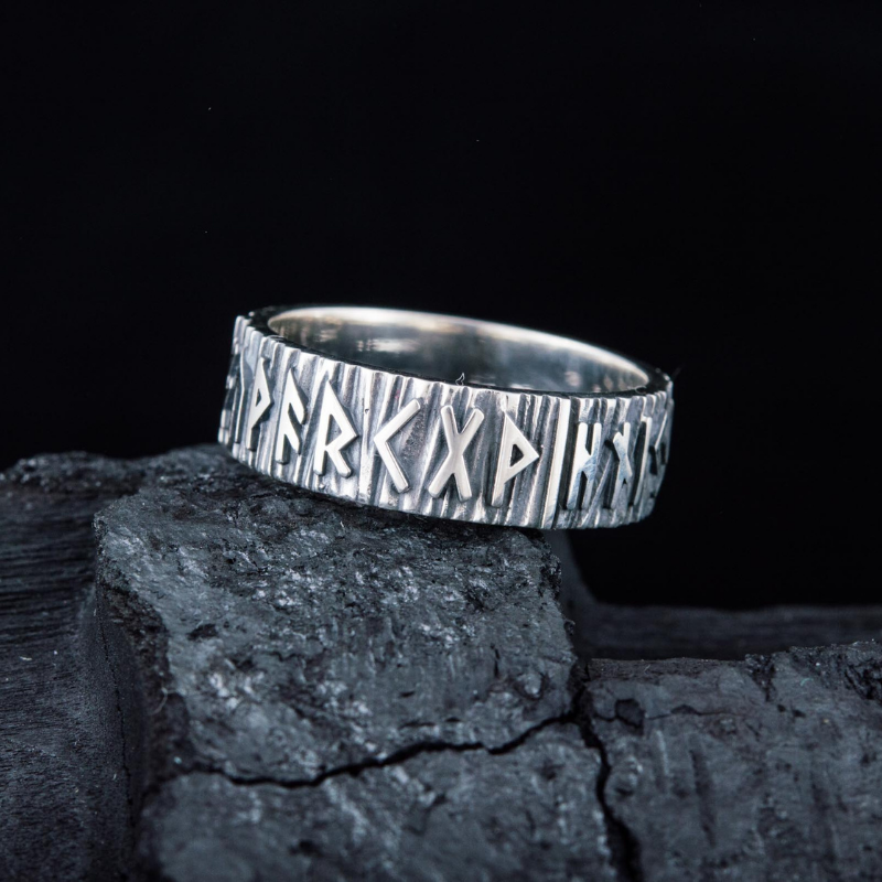 Anello in argento sterling con rune Elder Futhark realizzato a mano