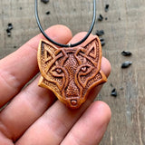 Questo ciondolo a forma di volpe dal design celtico in legno unico intagliato a mano è un pezzo unico nel suo genere che riunisce lo spirito vichingo e l'arte celtica in un unico design significativo.