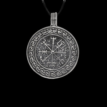 Amuleto con motivi norreni Vegvisir realizzato a mano in argento sterling